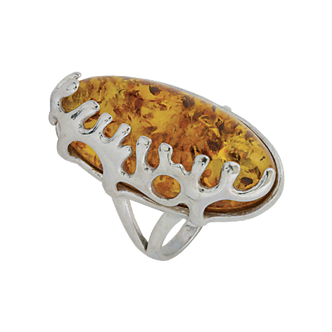 Кольцо серебряное, камень Янтарь, артикул:81160068 (5,52;17,5)