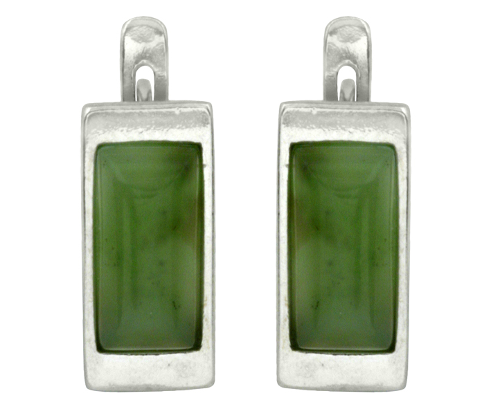 Серьги серебряные, камень Нефрит, артикул:82800095 (4,27)