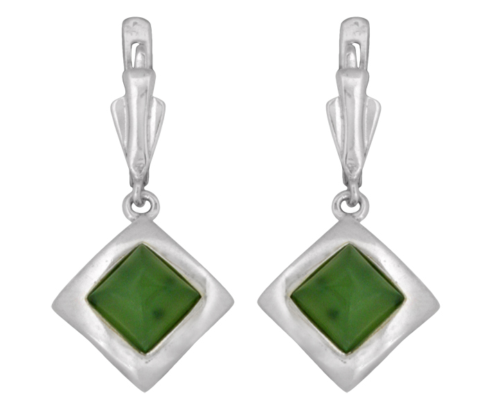 Серьги серебряные, камень Нефрит, артикул:82800200 (5,5)