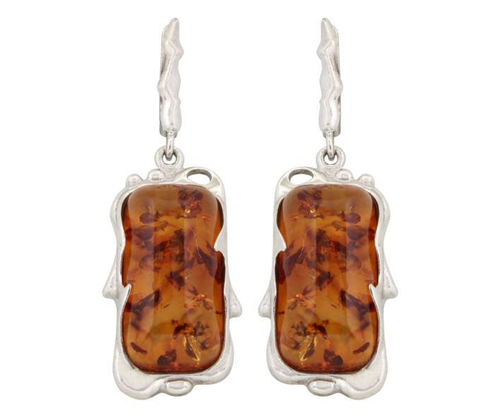 Серьги серебряные, камень Янтарь, артикул:82160020 (10,83)