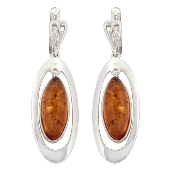 Серьги серебряные, камень Янтарь, артикул:82160036 (6,44)