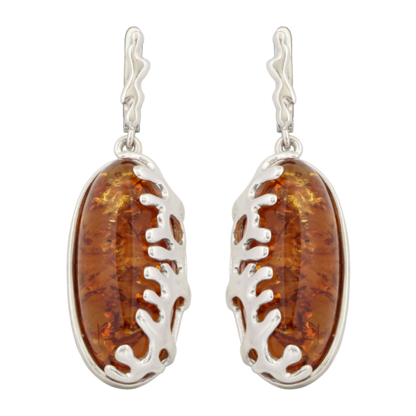 Серьги серебряные, камень Янтарь, артикул:82160068 (10,77)