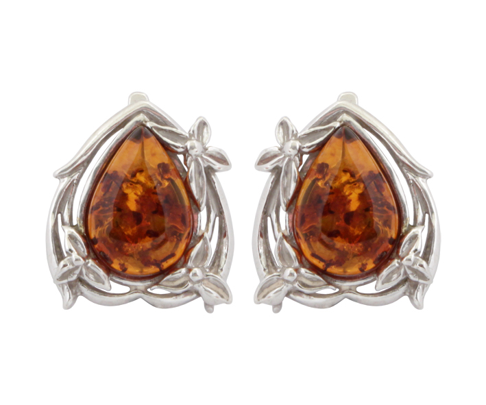 Серьги серебряные, камень Янтарь, артикул:82162026 (6,59)