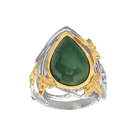 Кольцо серебряное, камень нефрит, артикул:91802026 (3,97;19)