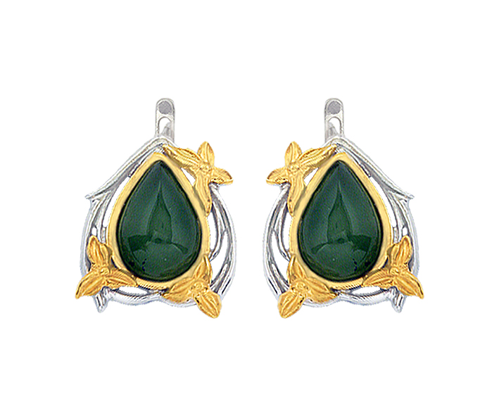 Серьги серебряные, камень нефрит, артикул:92802026 (7,64)