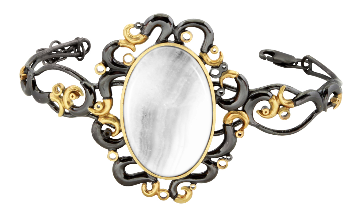 Браслет серебряный, камень Кахолонг, артикул:77279011 (18,44)