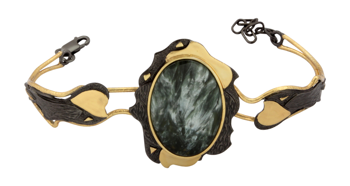 Браслет серебряный, камень Серафинит, артикул:77769003 (19,93)