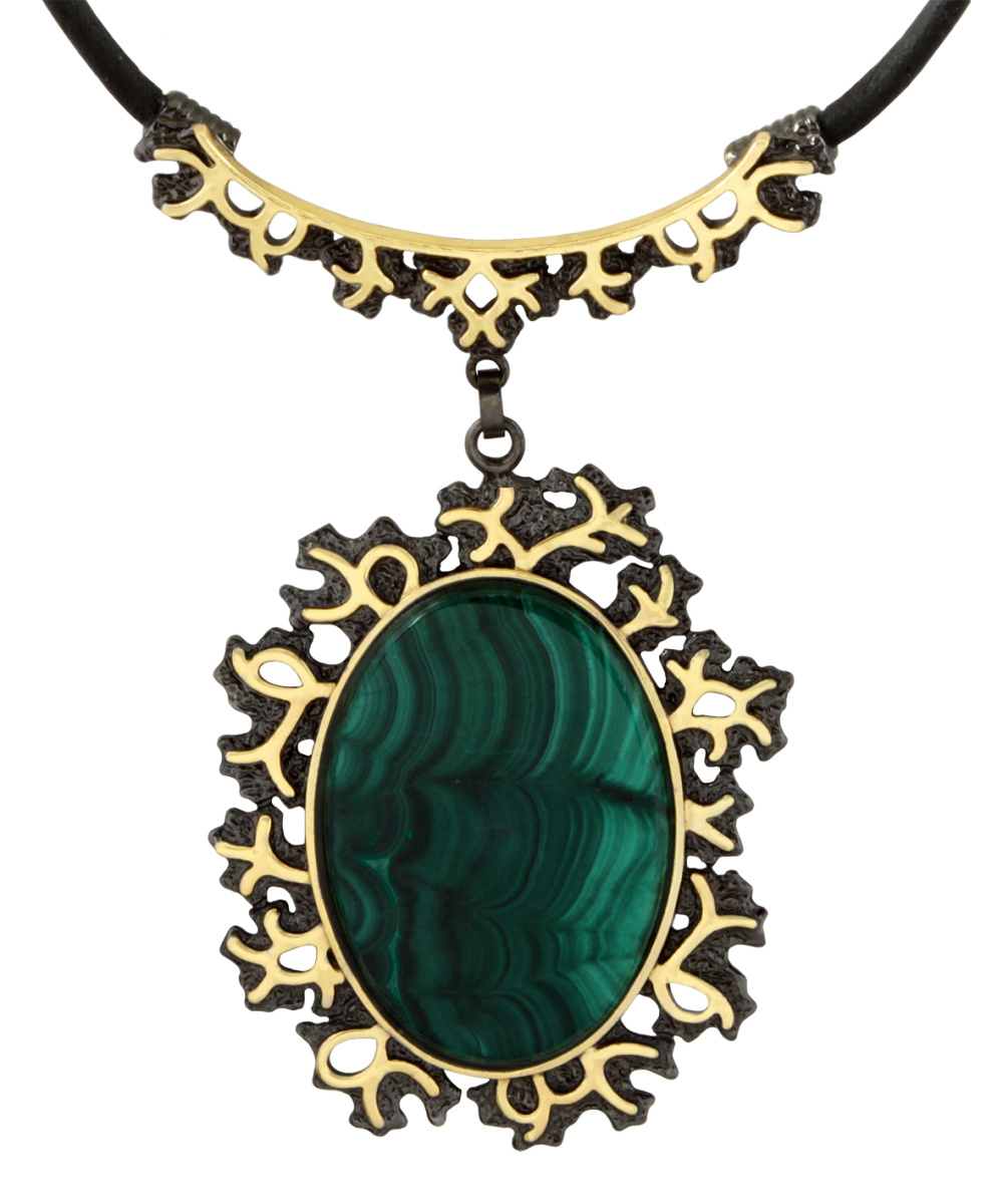 Колье серебряное, камень Малахит, артикул:74719004 (33,56)