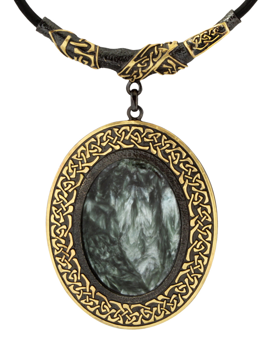 Колье серебряное, камень Серафинит, артикул:74769006 (40,39)
