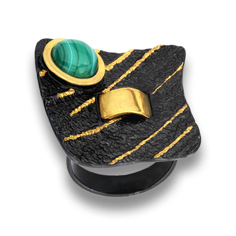 Кольцо серебряное, камень Малахит, артикул:71711030 (10,9;17,5)