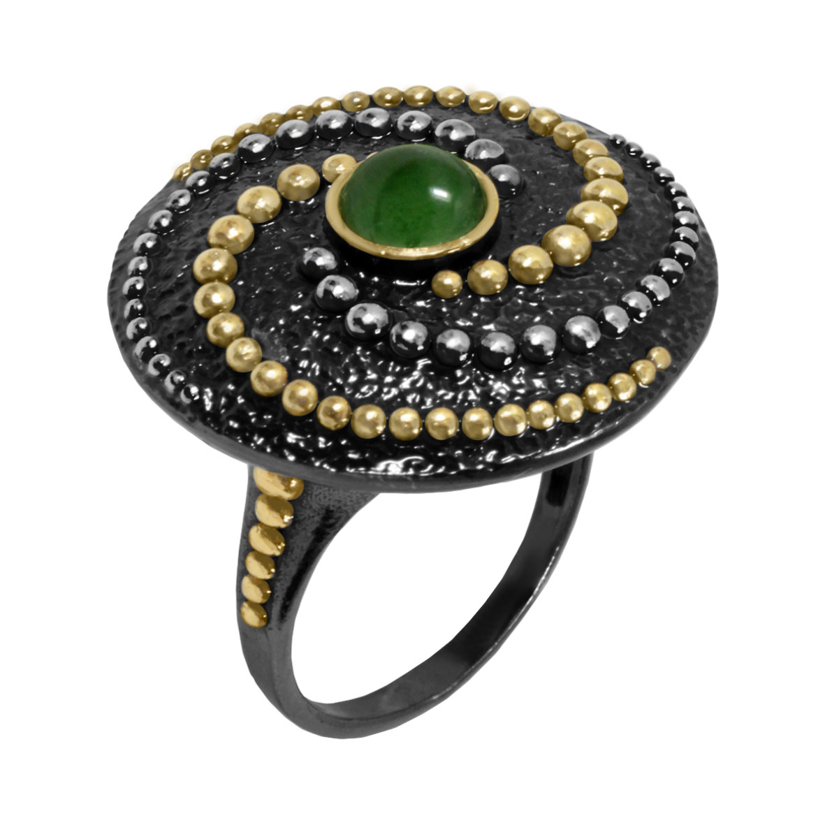 Кольцо серебряное, камень Нефрит, артикул:71801334 (8,46;19)