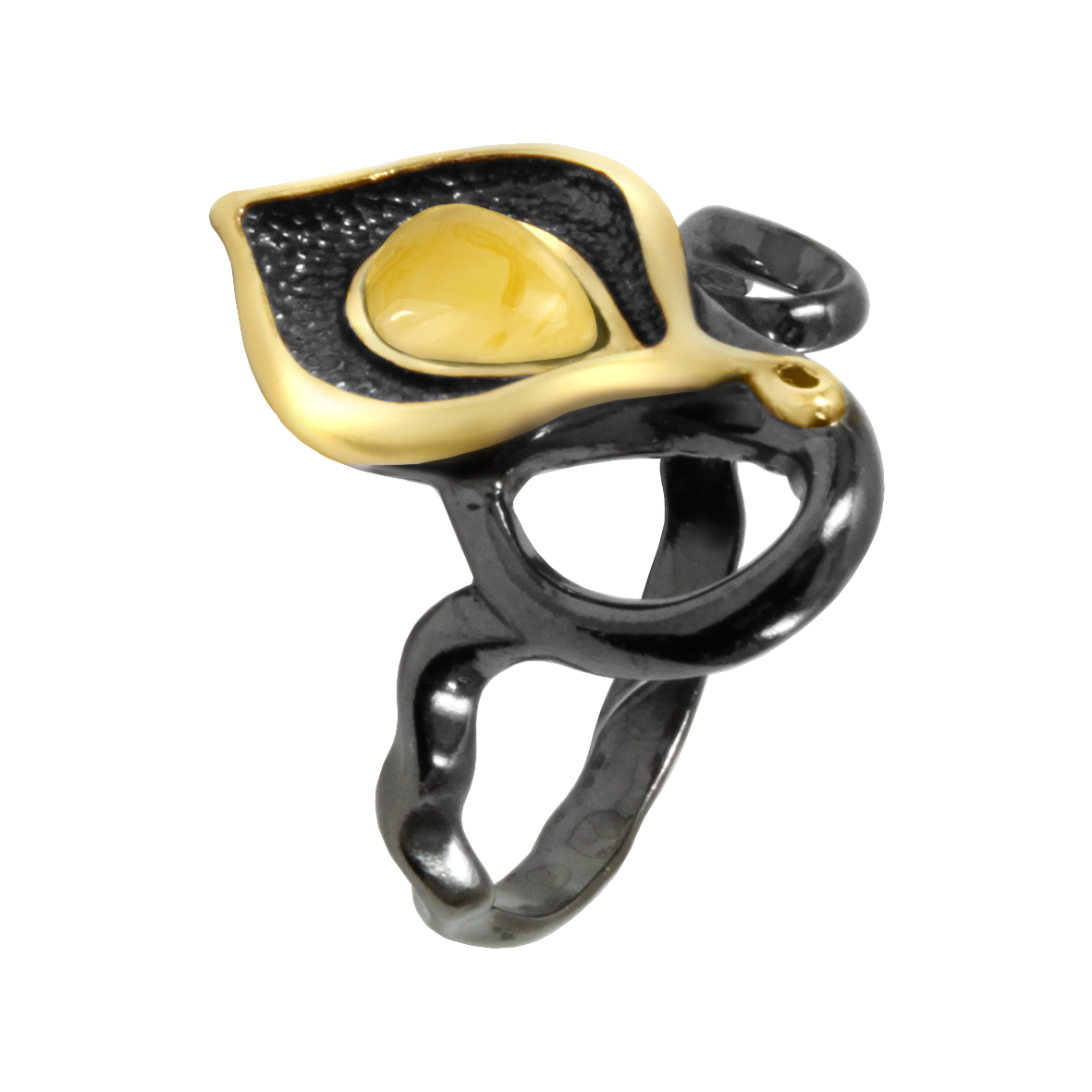 Кольцо серебряное, камень Янтарь, артикул:71111315 (3,73;19)