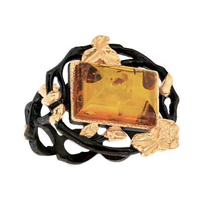 Кольцо серебряное, камень Янтарь, артикул:71132018 (4,19;17)