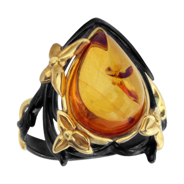 Кольцо серебряное, камень Янтарь, артикул:71162026 (3,55;17,5)