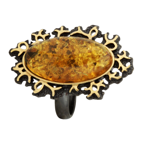 Кольцо серебряное, камень Янтарь, артикул:71169004 (7,01)