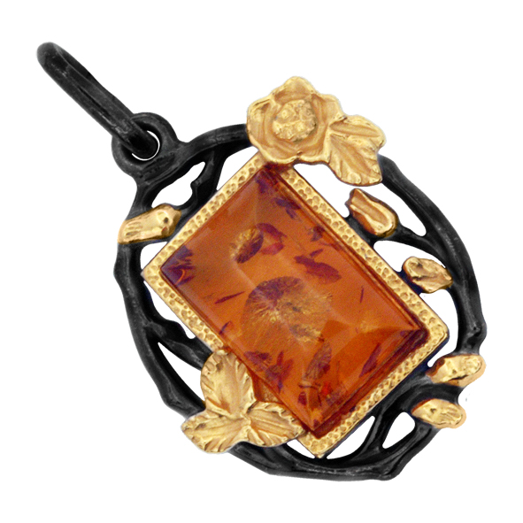 Подвеска серебряная, камень Янтарь, артикул:73132018 (3,13)