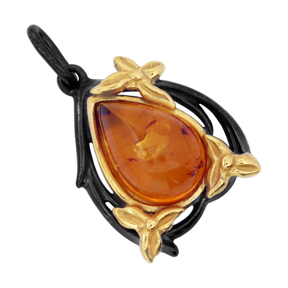 Подвеска серебряная, камень Янтарь, артикул:73132026 (3,18)