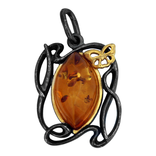Подвеска серебряная, камень янтарь, артикул:73162034 (2,57)