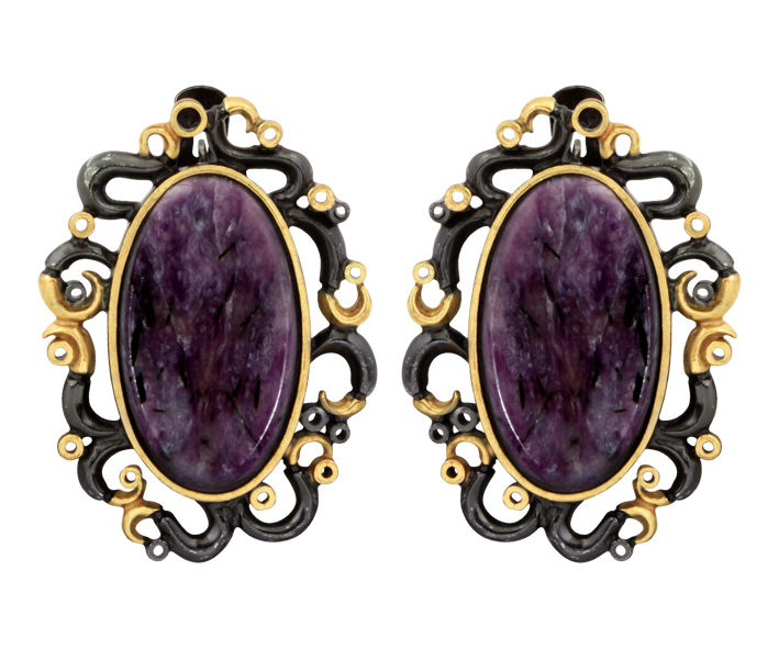Серьги серебряные, камень Чароит, артикул:72739011 (12,97)