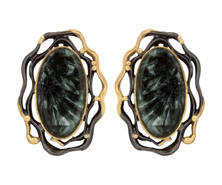 Серьги серебряные, камень Серафинит, артикул:72769002 (11,7)