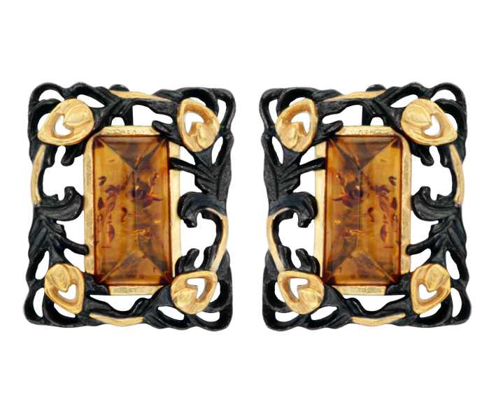 Серьги серебряные, камень Янтарь, артикул:72132039 (5,97)
