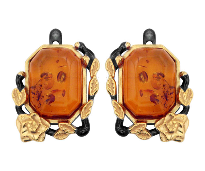 Серьги серебряные, камень Янтарь, артикул:72162020 (6,72)