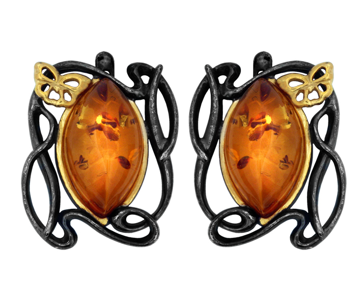 Серьги серебряные, камень Янтарь, артикул:72162034 (4,46)