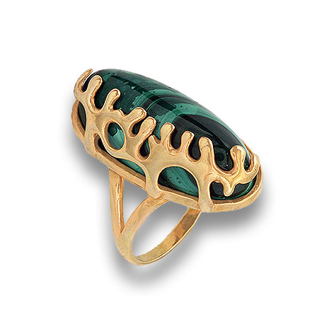 Кольцо серебряное, камень Малахит, артикул:51710068 (11,07;19)