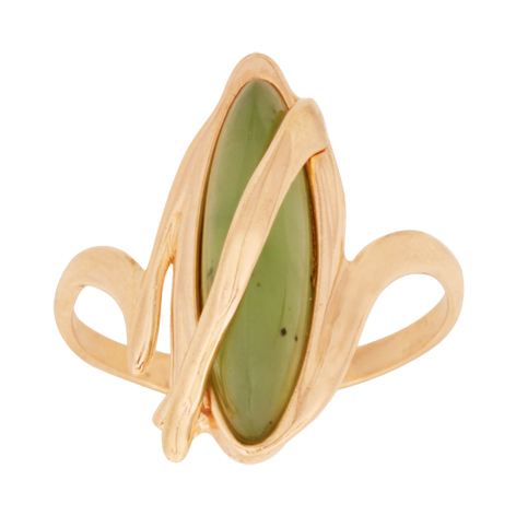 Кольцо серебряное, камень Нефрит, артикул:51800180 (3,49;18,5)