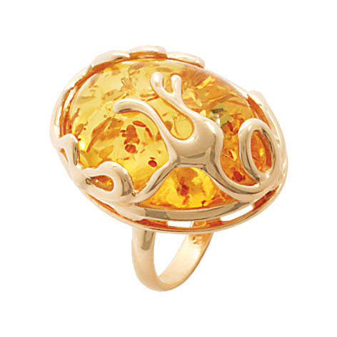 Кольцо серебряное, камень Янтарь, артикул:51160070 (6,65;16,5)