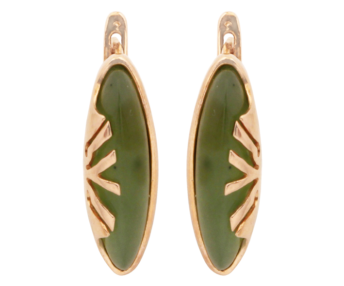 Серьги серебряные, камень Нефрит, артикул:52800466 (4,96)
