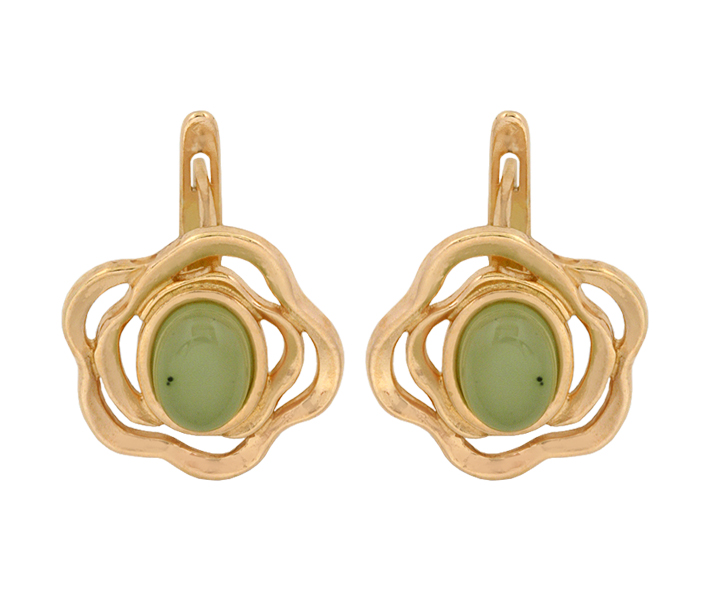 Серьги серебряные, камень Нефрит, артикул:52802031 (4,45)